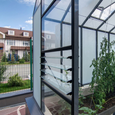 Теплица botanik T с мини-тамбуром — практичное решение для тех, кто хочет больше порядка и комфорта при работе с растениями. Наличие мини-тамбура позволяет отделить основное пространство теплицы от улицы, хранить инвентарь и снизить теплопотери при открывании дверей. Конструкция имеет стандартную ширину, модульную длину и оптимальный шаг дуг, обеспечивающий устойчивость и удобство эксплуатации. В качестве покрытия используется сырое или закалённое стекло.
